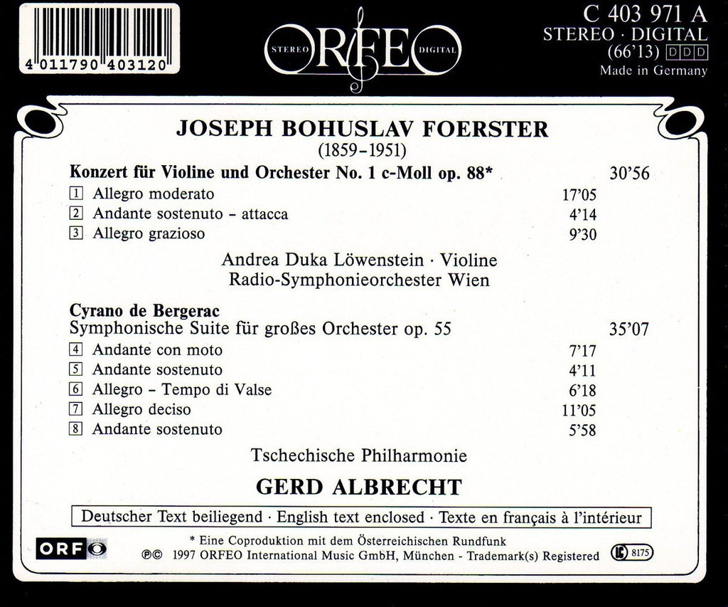 Foerster: Cyrano de Bergerac Suite. Concerto for Violin & Orchestera No. 1