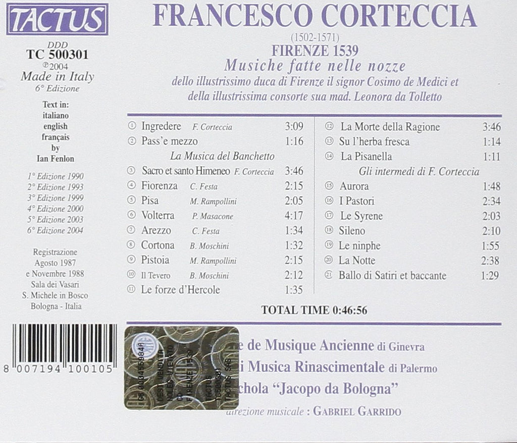 Genre: Francesco CortecciaCatalogue #: TC 500301Label: Tactus#CDs: : 1Format: CD